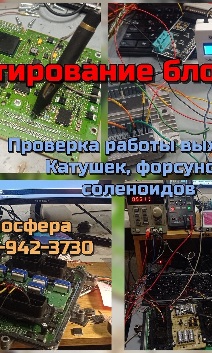 - ТЕСТИРОВАНИЕ на стенде выходов блока для работы катушек, форсунок и прочего