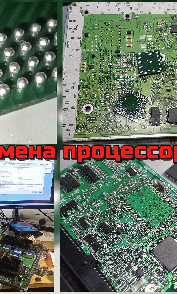 - Восстановление блоков со сложными неисправностями, ремонт прогаров, трещин, попадания жидкостей и неудачных попыток ремонта