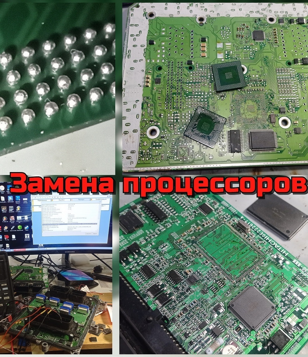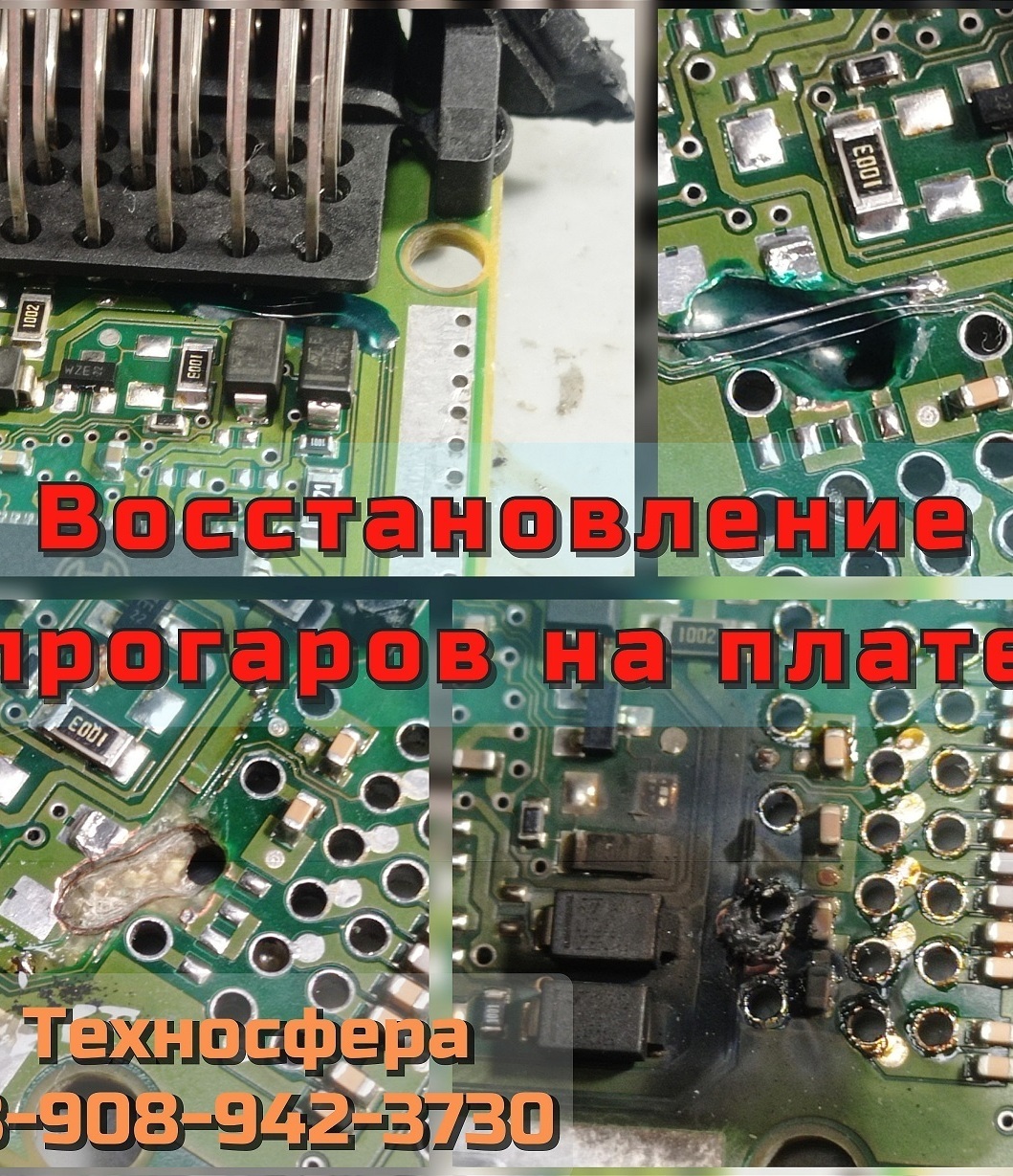 - Восстановление блоков со сложными неисправностями, ремонт прогаров, трещин, попадания жидкостей и неудачных попыток ремонта