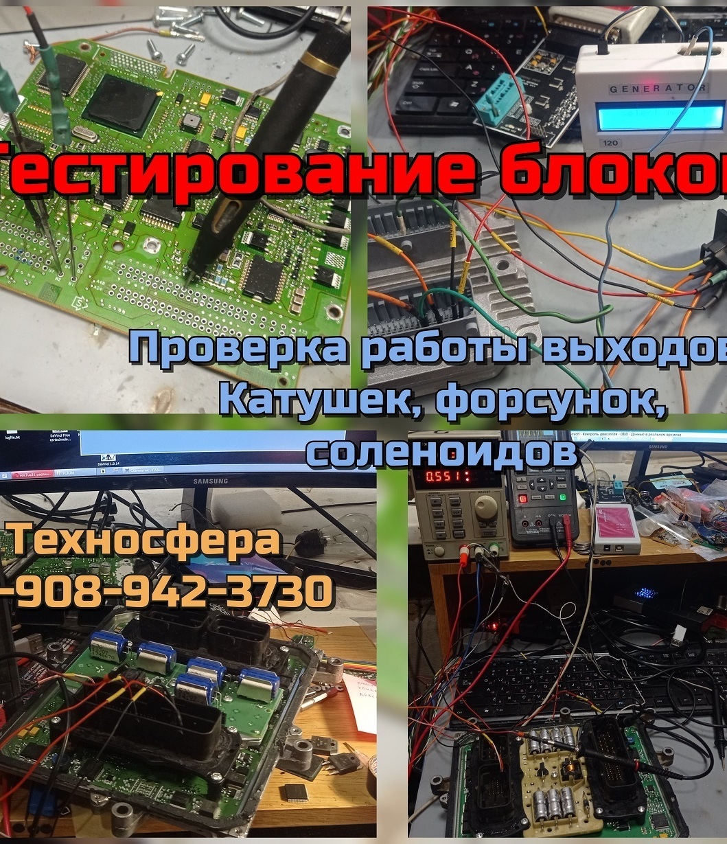 - ТЕСТИРОВАНИЕ на стенде выходов блока для работы катушек, форсунок и прочего